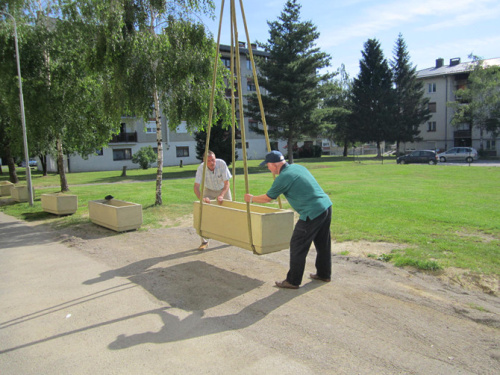 Slika 3 -postavitev cvetličnih korit s pomočjo stanovalcev